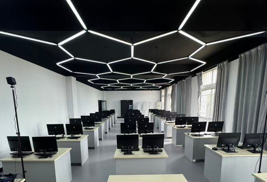 本实训室建筑面积80平方米,设60个标准实训工位,主要面向现代通信技术专业,是集教学、实训、社会培训与技术服务于一体的5G技术综合性实践平台。